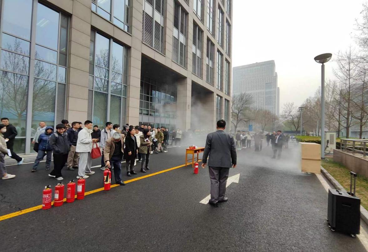应急疏散演练结束后,全体师生参加了新主楼物业组织的消防安全培训。物业王剑详细讲解了消防设备常识,灭火器的正确使用方法和步骤、适用范围及操作时的注意事项,并现场进行了示范。在专业人员的指导下,师生们积极踊跃地依次亲自上手进行了灭火器的实操演练,进一步巩固了消防安全知识,提高了实战技能。