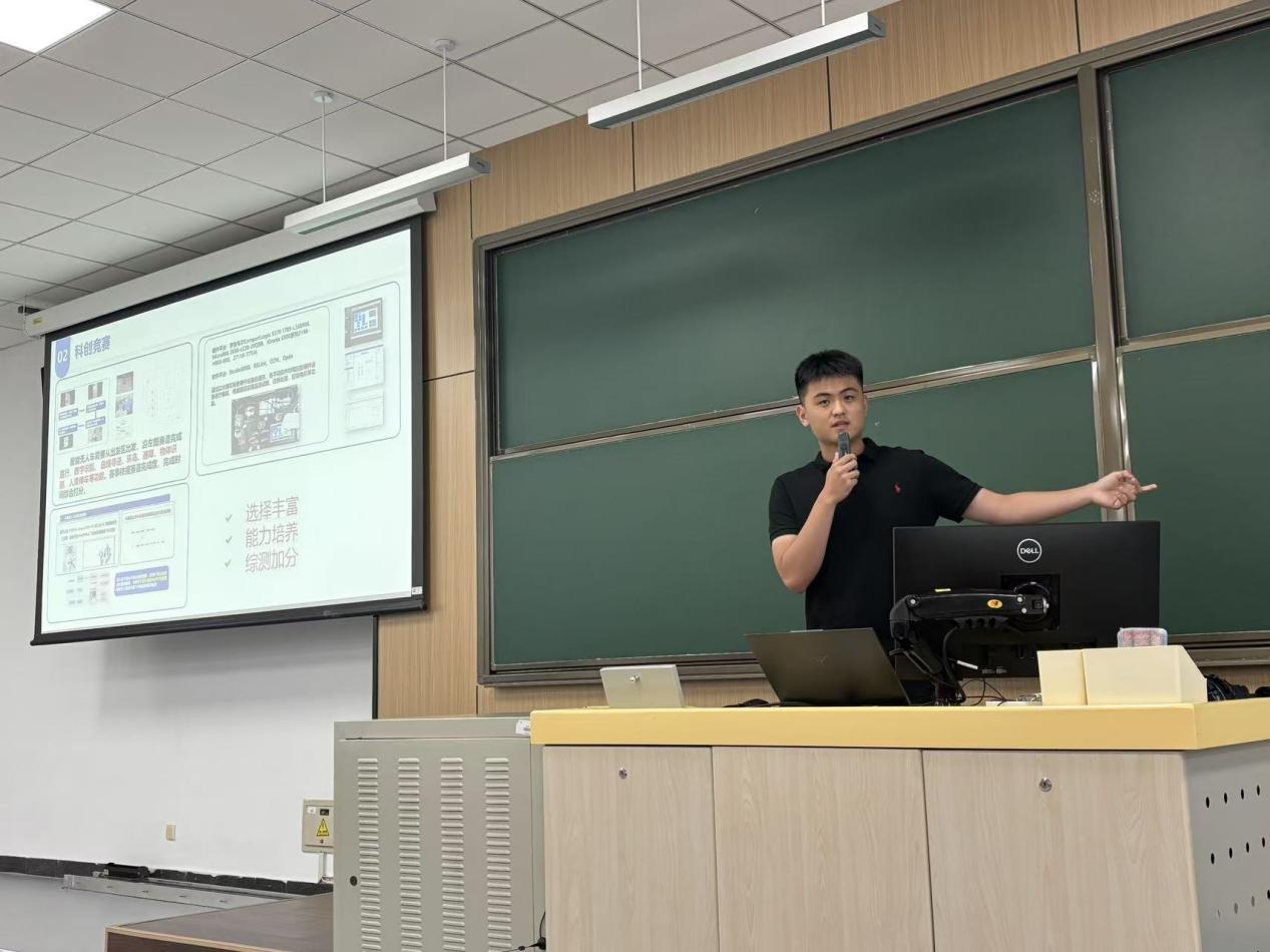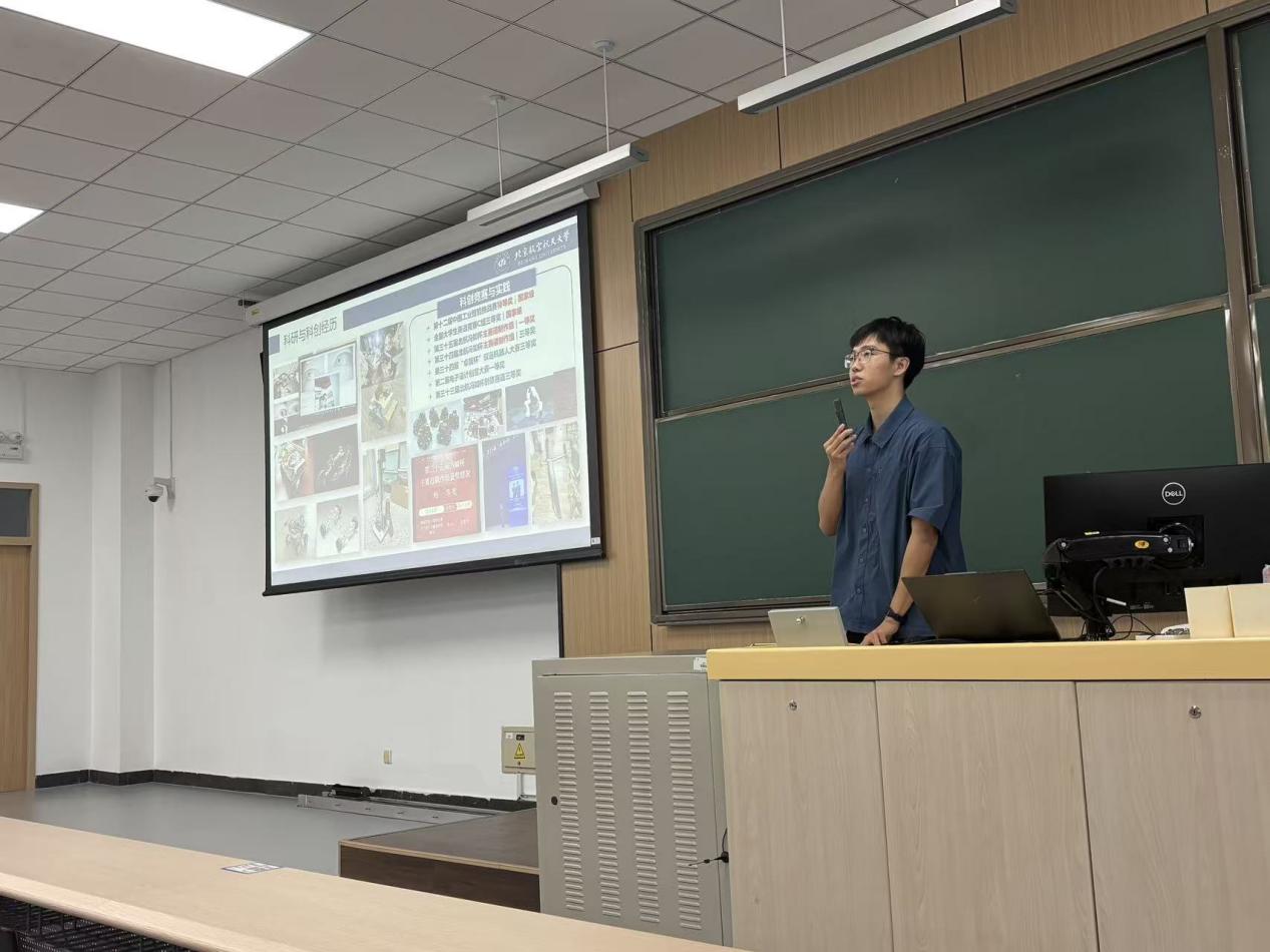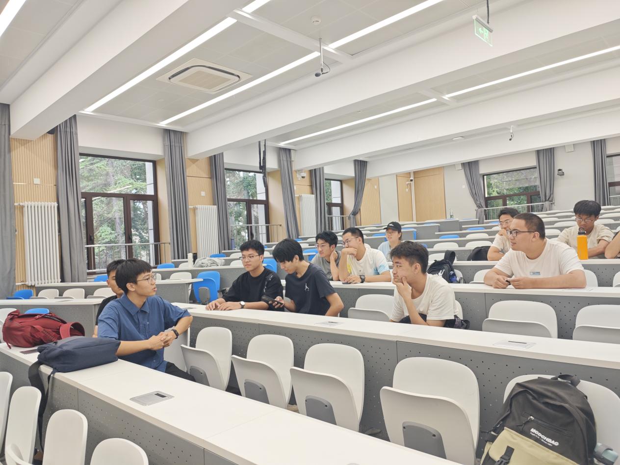 孙孟旭学长则聚焦课程学习与竞赛科研展开分享。科创竞赛方面,孙学长以他参加“卓翼杯”的经验为例,讨论竞赛在综测加分之余对于个人能力的培养与提升。在进组科研方面,他结合自身经验给出实用建议:主动通过学院平台了解导师研究方向,大胆沟通争取进组机会,在参与科研项目的过程中逐步培养科学思维、探索学科兴趣点。同时,作为院体育部副部长,他热情号召同学们走出教室,在体育竞技中感受团队协作的力量,展现青春活力;而作为一名中共党员,他也以身作则,积极投身社会实践,用实际行动践行 “把论文写在祖国大地上” 的初心,为同学们树立了全面发展的榜样。
