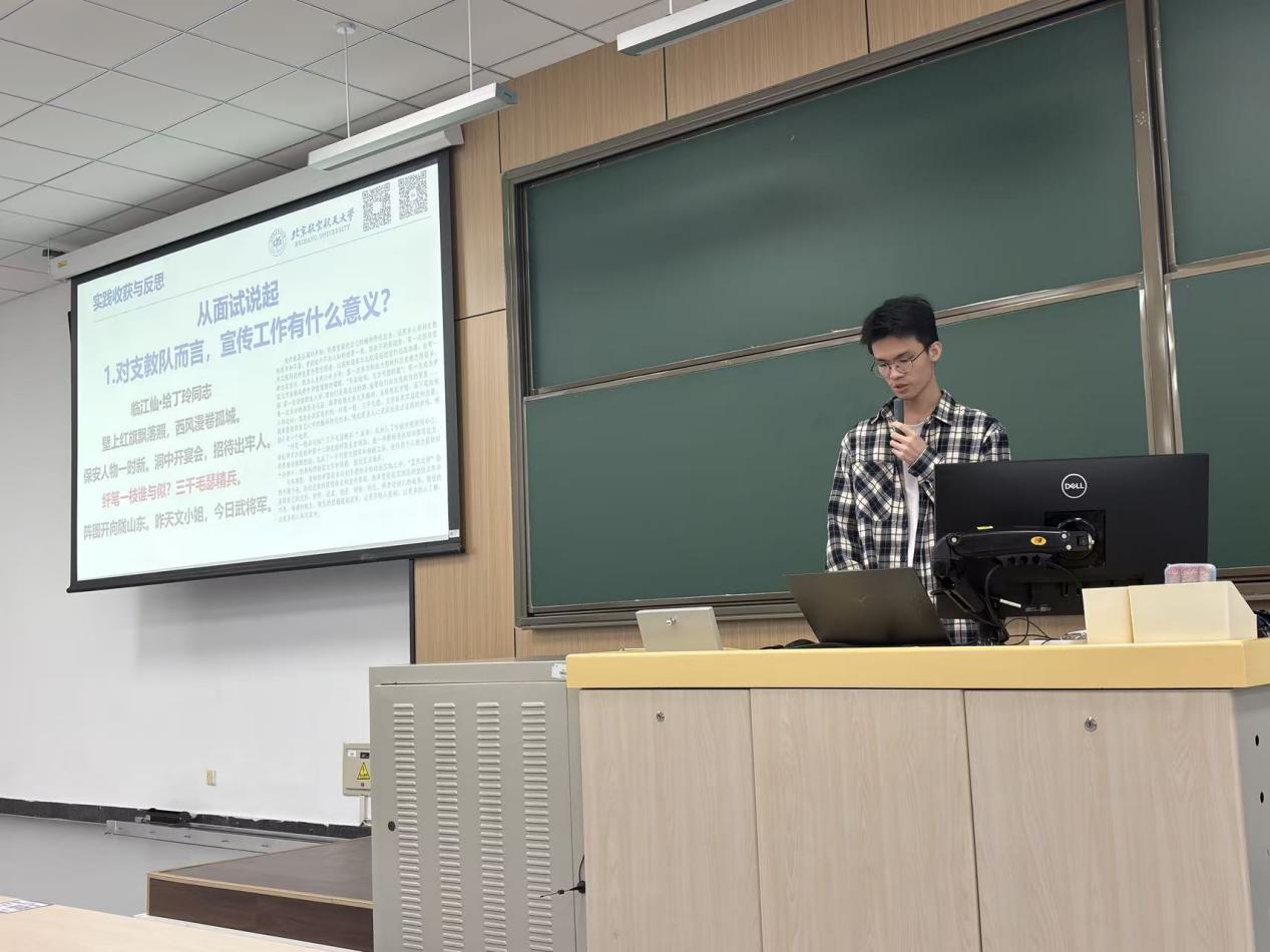 陈铭良学长以实践活动与宣传工作为主题,结合担任蓝天之梯支教队副队长、beat365官方网站本科学生会副主席的经历,分享他从三期支教实践与所负责的宣传工作中得到的成长与收获。为了突破支教队宣传形式单一的困境,他带领宣传组同学打造了全方位多维度宣传矩阵,遵循“主线串联、多线并举”的设计理念,使蓝天之梯支教队在社会层面取得了更为广泛的认可。在宣传工作中,他以情动人,唤起心灵共鸣;在实践生活中,他开放视野,发掘人性光辉。最后,陈铭良学长还鼓励同学们放下焦虑,“勇敢尝试、大胆探索,做一些自己喜欢的事,也做一些自己不那么喜欢但是良药苦口的事”。